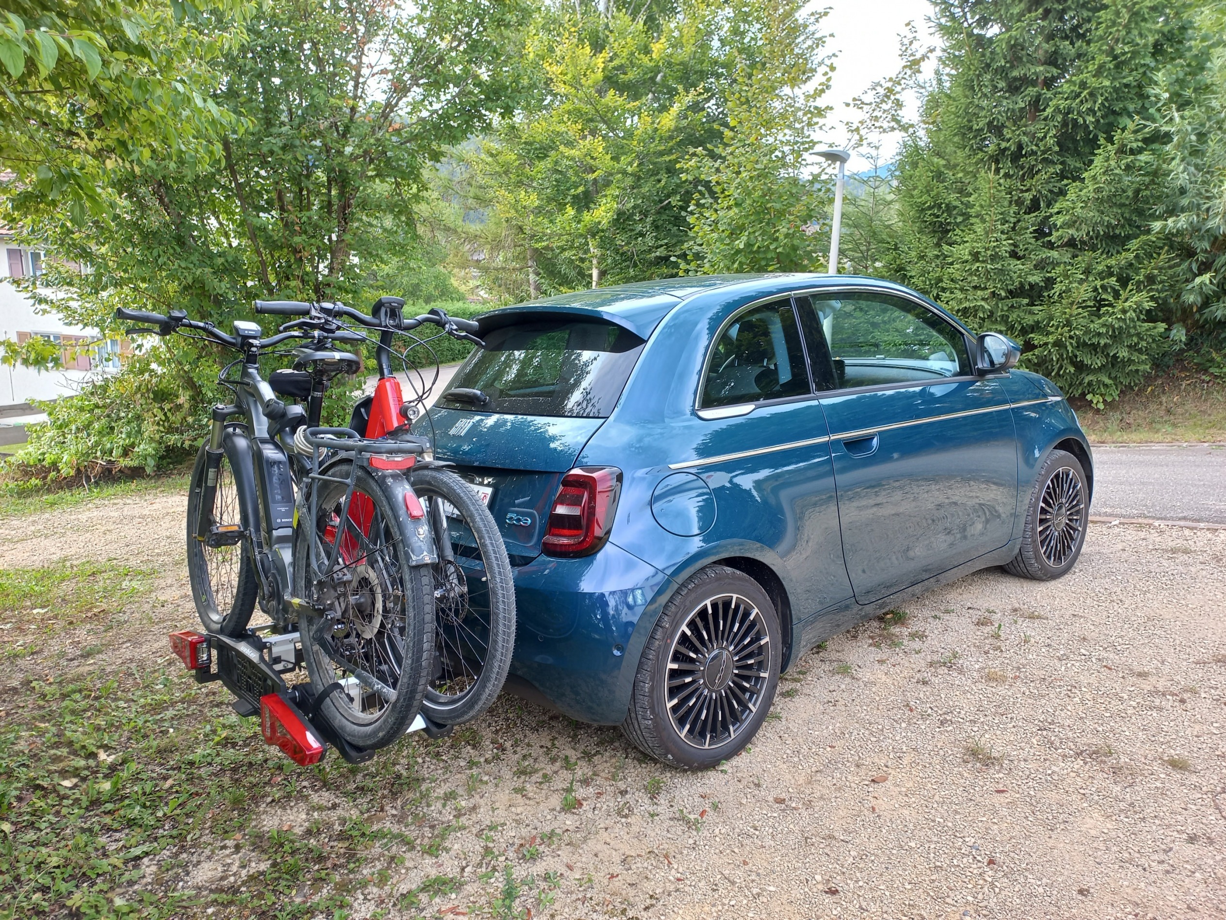 Auch 2 eBikes passen auf den kleinen Fiat.....